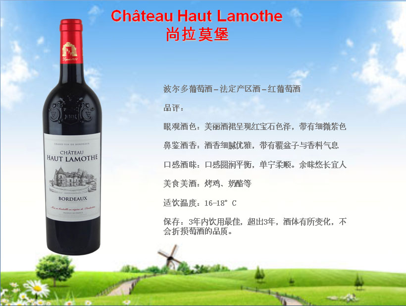 尚拉莫堡波尔多干红葡萄酒CHÂTEAU HAUT LAMOTHE